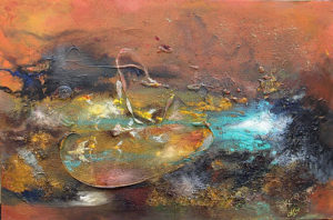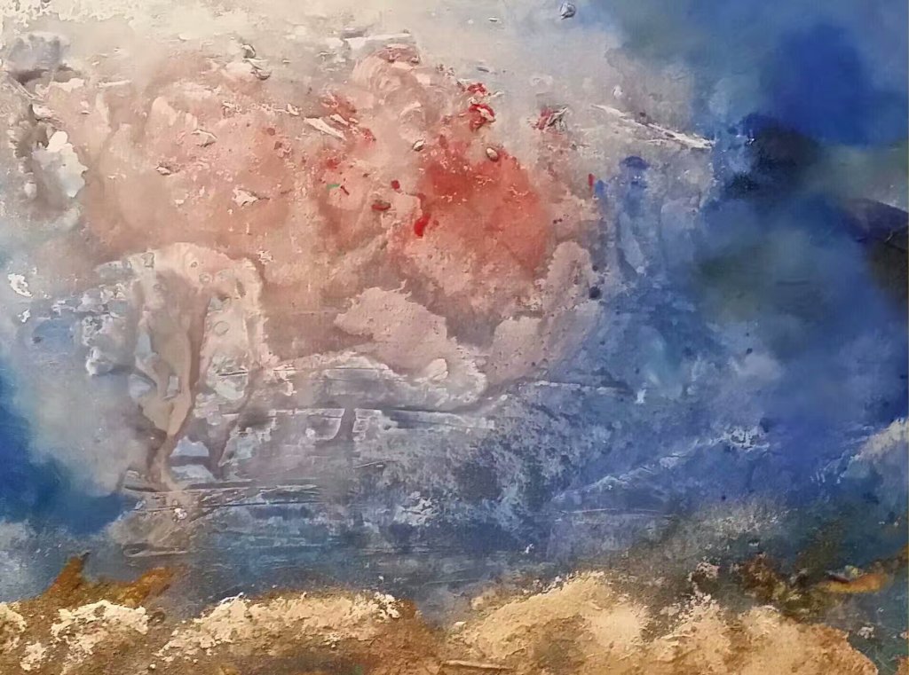 Au regard des œuvres de l’artiste MICHEL TONG, on pourrait rappeler des lumières qui pénètrent à travers des nuages, les caprices des nuages, comme des vagues de plus en plus pures, on pourrait évoquer des images comme concentration des nuages avant l’orage ; on pourrait représenter une brume épaisse qui rampait dans la vallée, le fleuve qui tourbillonne ; on pourrait se figurer le mystère des étoiles, des nébuleuse spirales et l’évolution de l’univers ; on pourrait se souvenir de l’éclat de la soie avec sa brillance ; on pourrait faire revivre la nature, le monde en miniature …