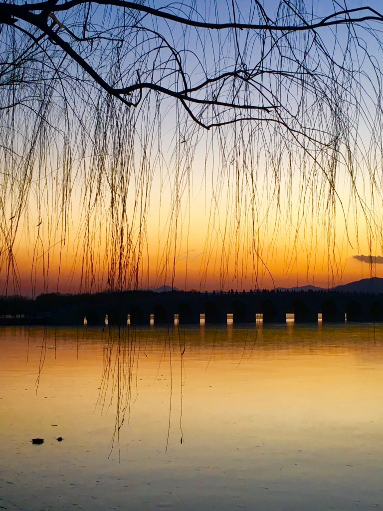 据说当年【颐和园】十七孔桥的建造者精心设计,将南回归线的落日与十七孔桥成垂直状态,因此当夕阳西下时,阳光最大程度的洒满十七孔桥的每个桥洞,并出现金光穿洞的奇特景观